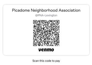 Joining PNA has never been easier – your $20 annual dues can now be paid with Venmo! Join or renew your PNA membership using the QR code provided or find us @PNALexington. Be sure to add your address and email to the payment note.
