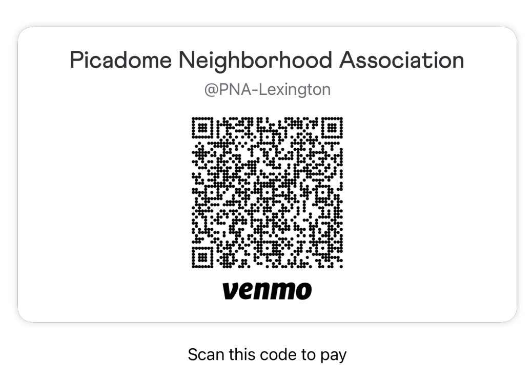Joining PNA has never been easier – your $20 annual dues can now be paid with Venmo! Join or renew your PNA membership using the QR code provided or find us @PNALexington. Be sure to add your address and email to the payment note.